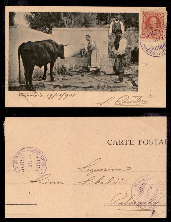 Piroscafo Postale Letimbro 19.10.01 (viola) - cartolina da Creta a Palermo