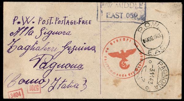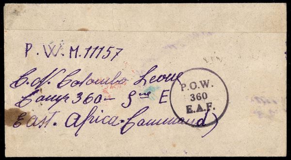 Prigionieri di Guerra - busta lettera dal P.O.W 360 E.A.F. - P/W Middle East 059 del 1943 per l'Italia