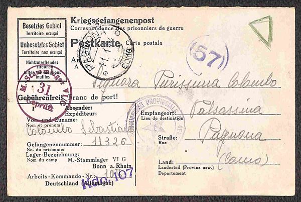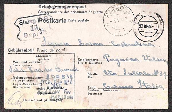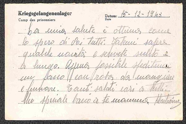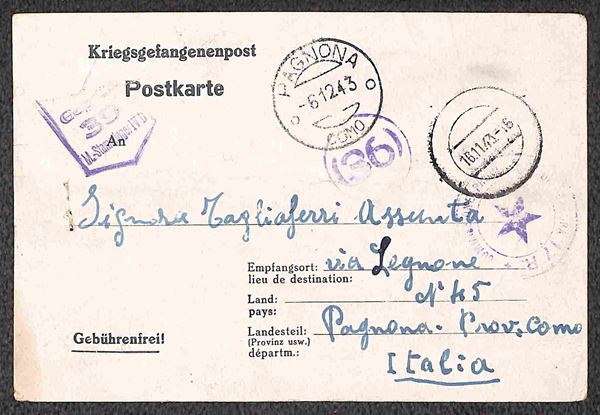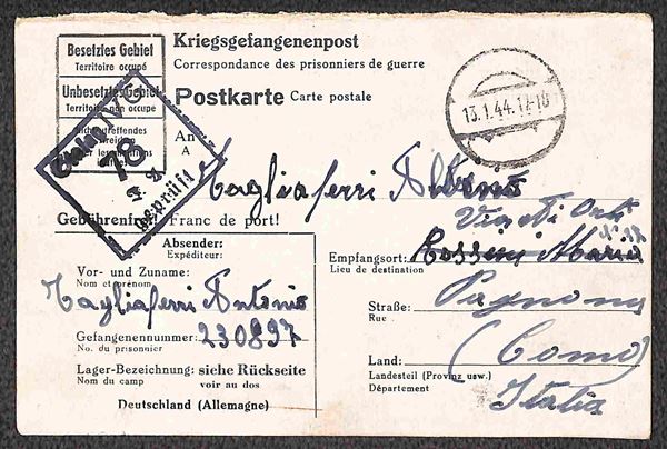 Prigionieri di Guerra - Insieme di 4 cartoline Kriegsgefangenenpost del 1944 per l'Italia