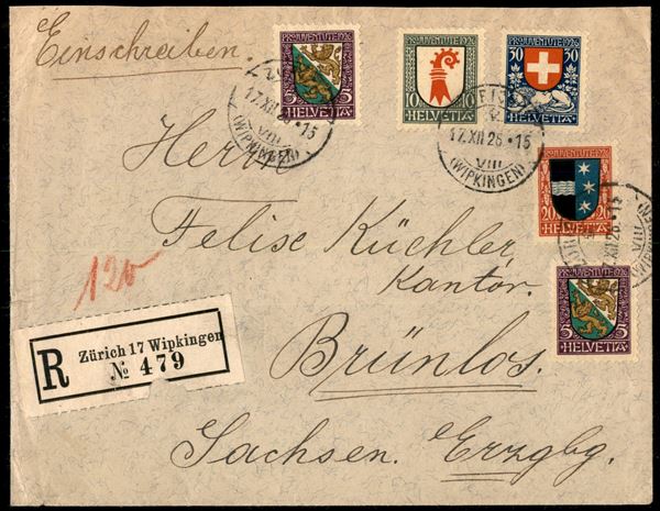 Pro Juventute (214 due + 215/217) - serie completa su raccomandata da Zurigo del 17.12.25