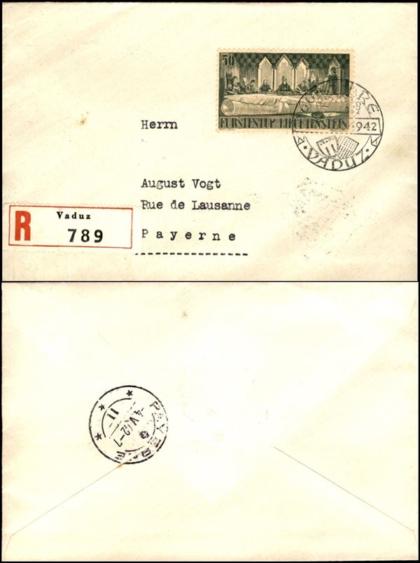 Raccomandata affrancata con 50 rp. (204) da Vaduz a Payerne del 3.5.42