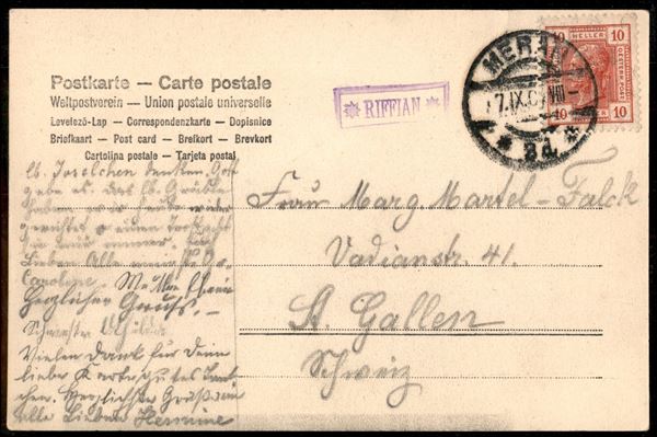 Riffien (P.ti 8) - cartolina (veduta fotografica) per St. Gallen del 7.9.07