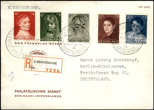 Ritratti (707/711) - serie completa su raccomandata da Gravenhage a Berlino del 7.1.58