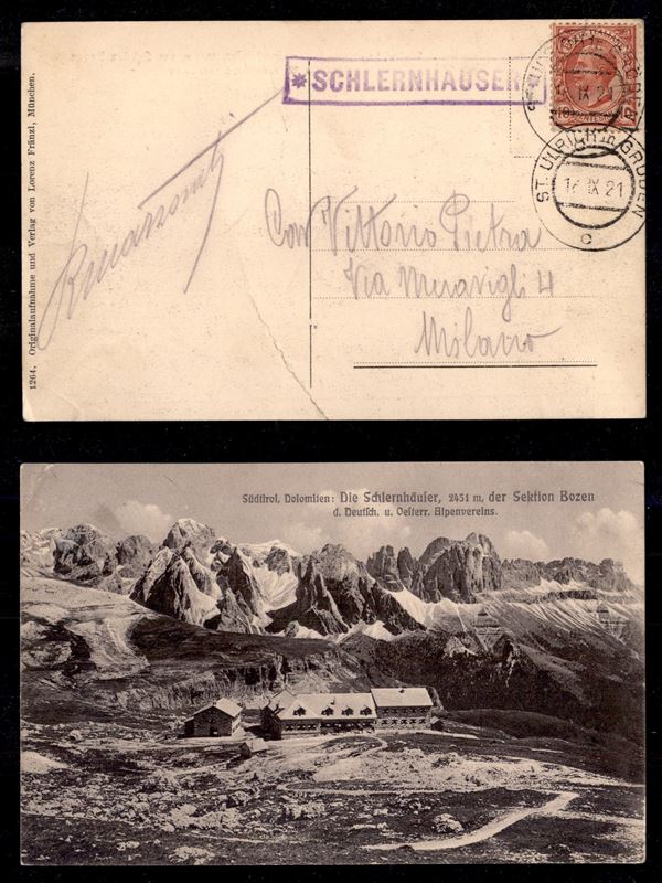Schlernhauser (P.ti 3) - cartolina panoramica per Milano del 18.9.21