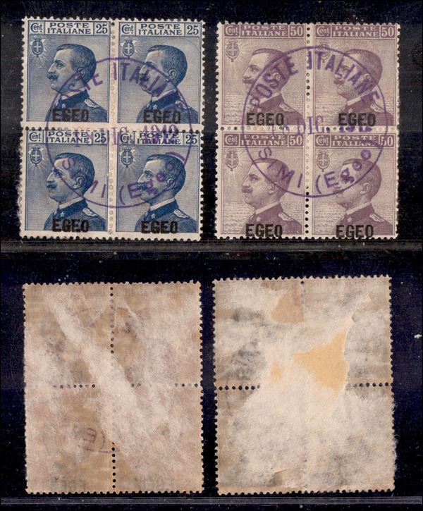 Simi (Egeo) Poste Italiane -Soprastampati (1/2da-Egeo) - quartine usate