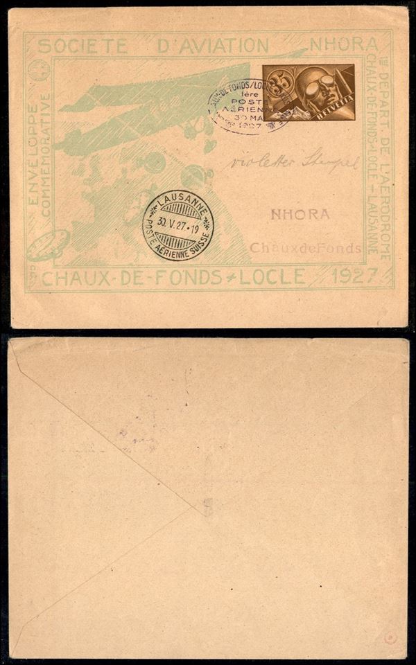 Societe d'Aviation Nhora/Chaux de Fonds Locle – Busta postale 35 cent – Lousanne 30.5.27