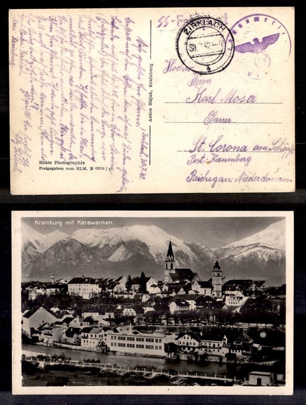 SS Feldpost (lineare) – cartolina in franchigia da Zirklach a St. Corona del 30.7.42
