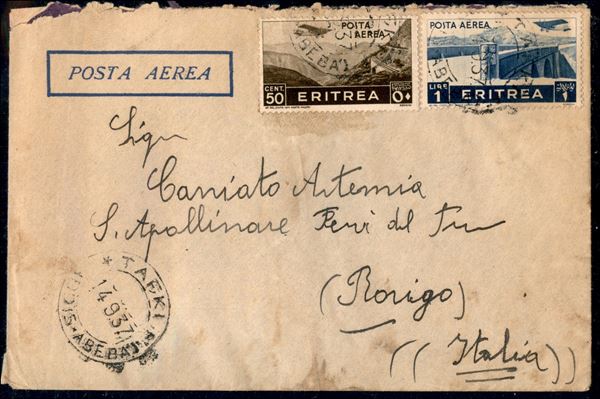 Tafki (Addis Abeba) 14.9.37 - aerogramma per Rovigo (Eritrea 18+21 aerea)