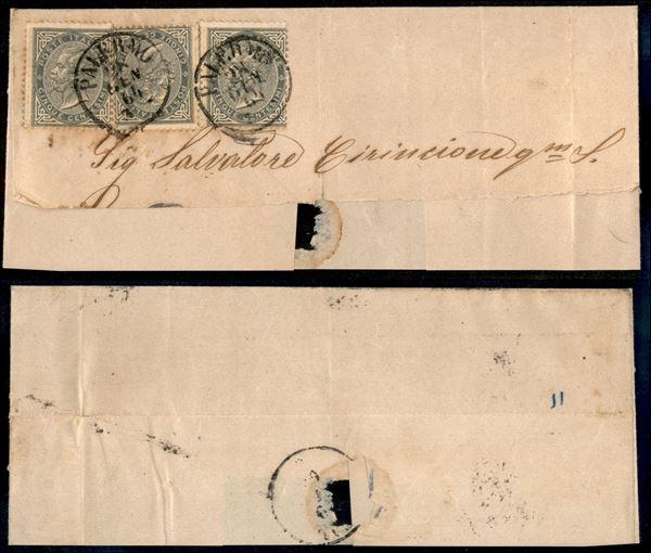 Tre 5 cent De La Rue (L16) su testatina di lettera da Palermo a Cefalù del 28.1.64