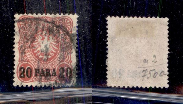 Uffici Postali all'Estero - Turchia - 1884 - 20 para su 10 pf (2b) . usato (100)