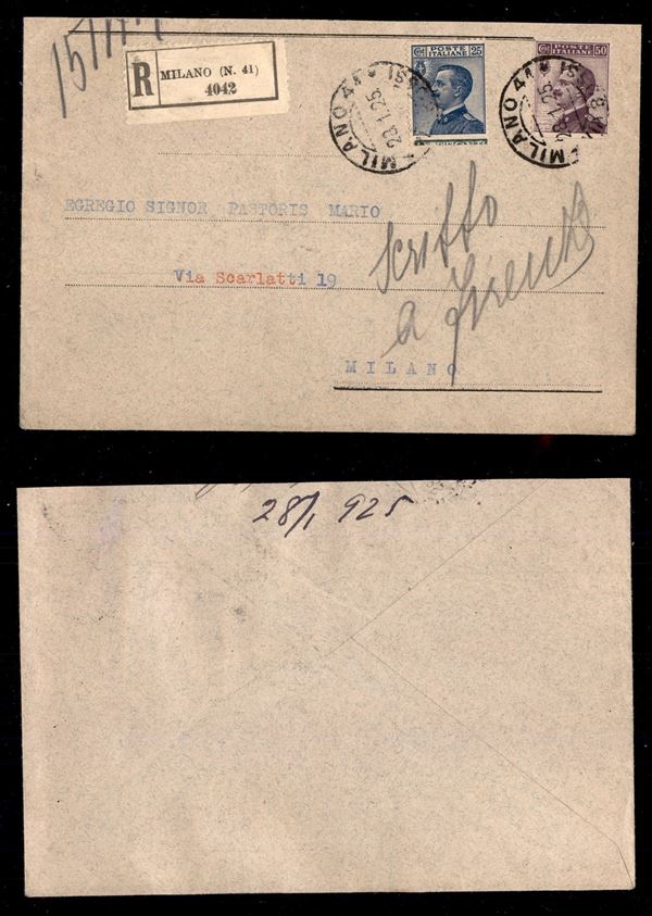 Vignette asportate - 25 cent Reinach (7) + 50 cent (10) - raccomandata per cittą - Milano 28.1.25
