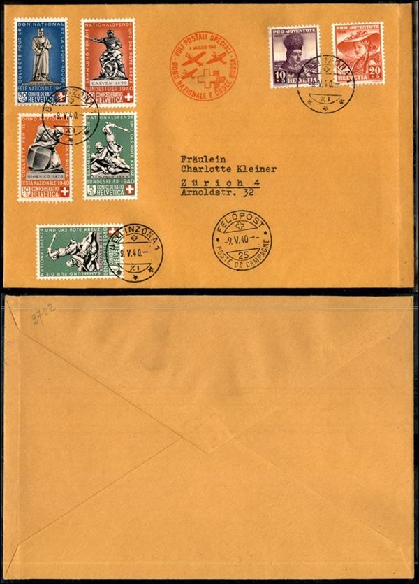 Voli postali Speciali 9.5.40 – aerogramma raccomandato da Bellinzona a Viareggio (349/352)