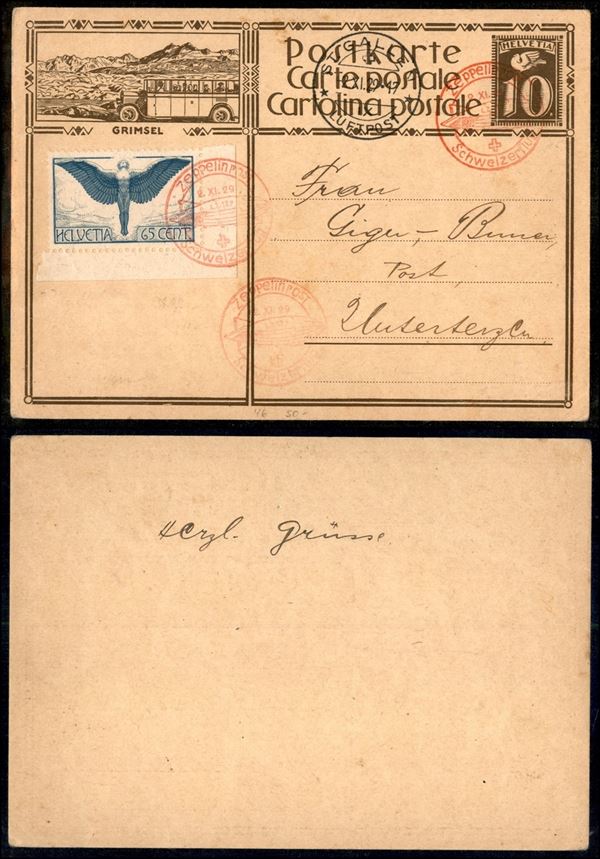 Zeppelin Schweizerflug – Intero Postale da 10 cent con affrancatura complementare ( A10) – St. Gallen 2.11.29