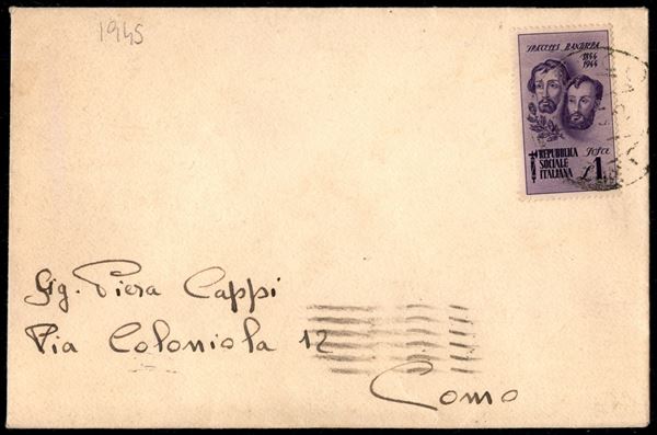 1 lira Bandiera (513) isolato su busta da Lecco a Como del 2.1.1945