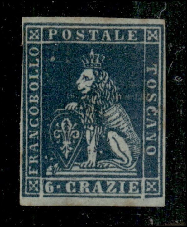 1851 - 6 crazie (7c) usato con invisibile annullo (croce) a penna