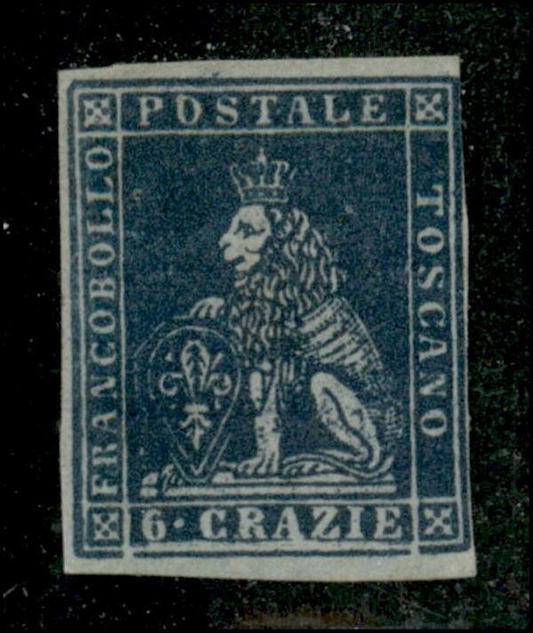 1851 - 6 crazie (7c) usato con invisibile tratto a penna