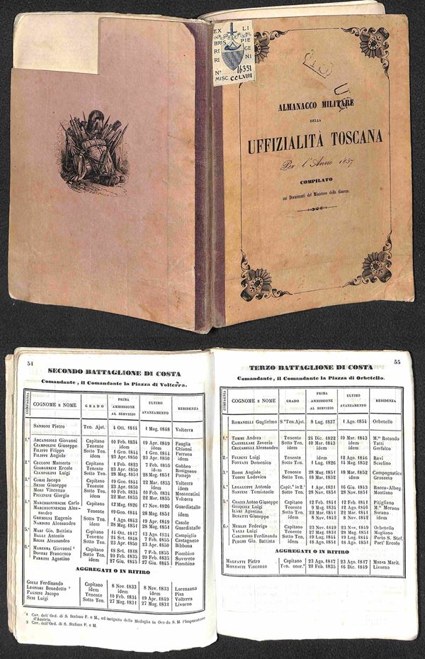 1857 - Almanacco Militare della Uffizialitą Toscana (compilato sui documenti del Ministero della Guerra) - opuscolo di 90 pagine copertina (14x20)