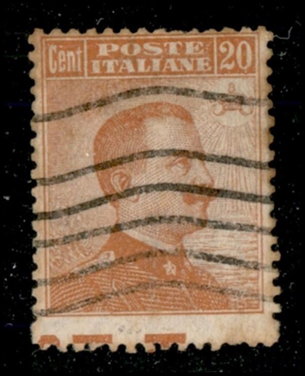 1917 - 20 cent Michetti (109aa varietà) usato - filigrana lettere (10/10) in basso + salto di dentellatura con diciture marginali