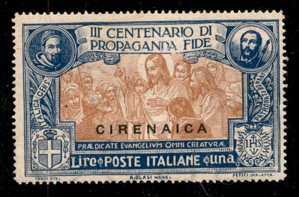 1923 - 1 lira Propaganda Fide (4) - filigrana lettere 10/10 (TESO) - gomma integra