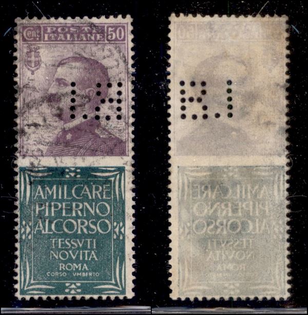 1924 - Perfin B.I. - 50 cent Piperno (13) usato