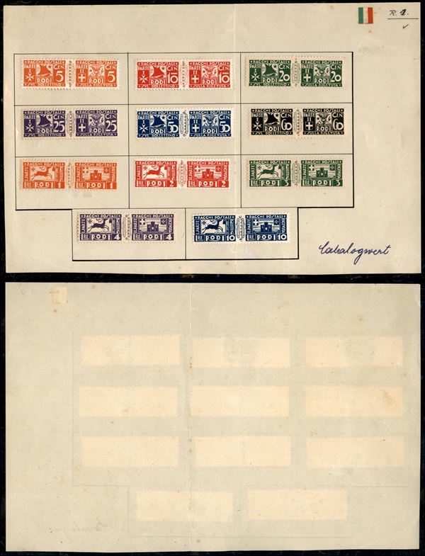 1934 - Allegorie (1/11 - Pacchi Postali) - serie completa - gomma originale - applicati con linguella su foglietto artigianale (180)
