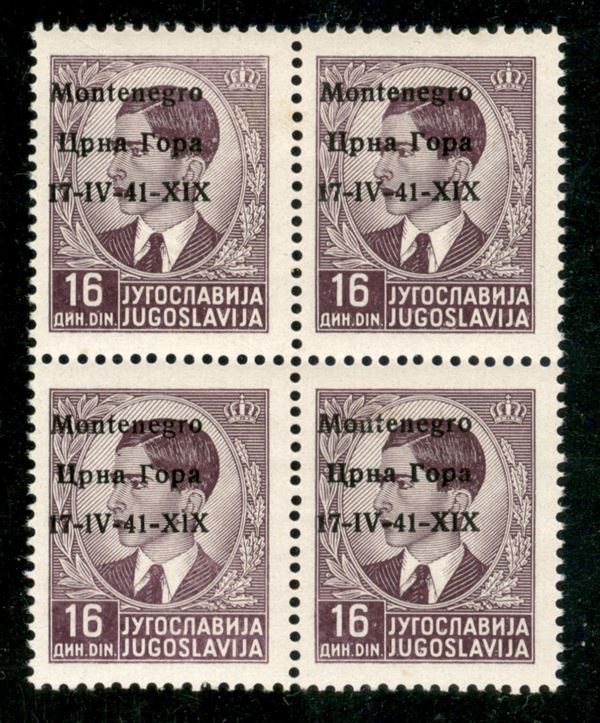 1941 - 16 din (12+12+12pb+12) - quartina - errore nel pezzo in basso a sinistra - gomma integra