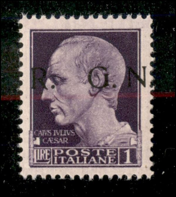 1943 - 1 lira (479/Ig - seconda tiratura - CEI?10/I) con soprastampa spostata (R a sinistra) - gomma integra - cert. AG