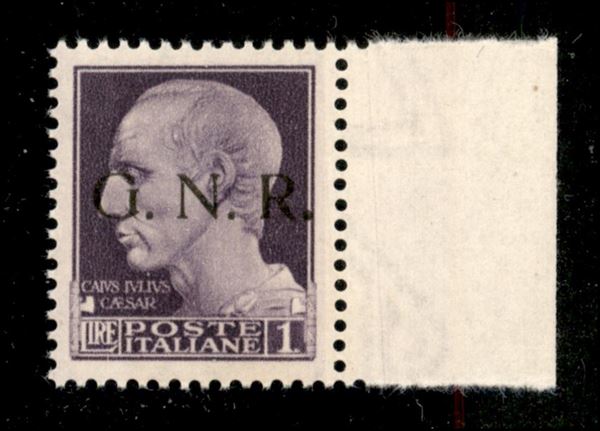 1943 - 1 lira (479/Ipc) bordo foglio con punto grosso dopo R - gomma integra (250)