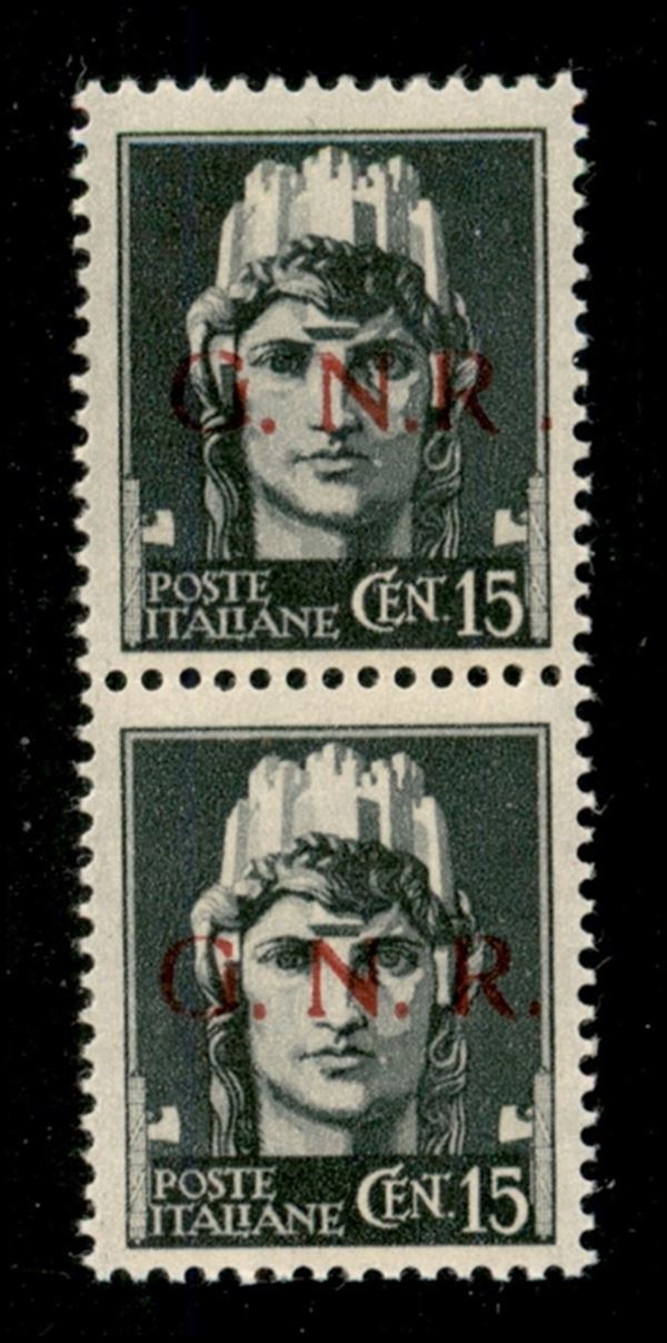 1943 - 15 cent (472/I l + 472/I) - R accostato a N in coppia verticale col normale - gomma integra