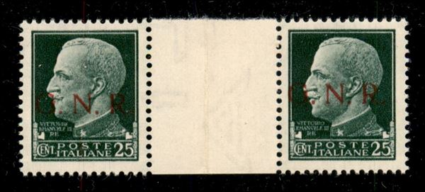 1943 - 25 cent (474/I) - coppia orizzontale con interspazio al centro - gomma integra