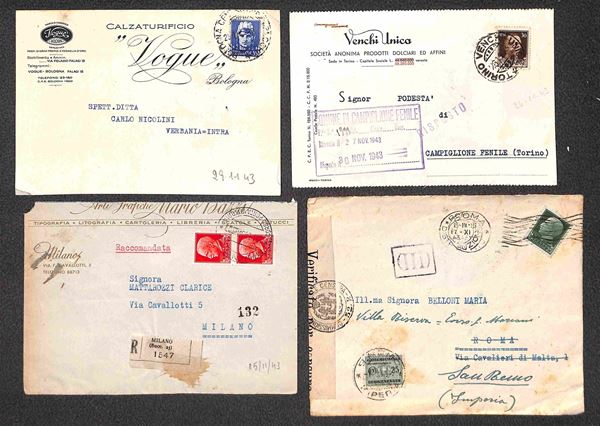 1943 - Novembre (15/29) - Otto corrispondenze diverse con affrancature del periodo
