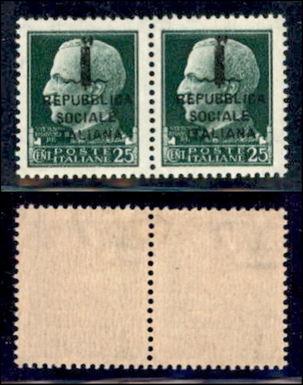 1944 - 25 cent (491) in coppia - Taliana (pos. 27) a sinistra - gomma originale