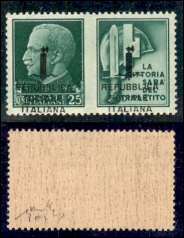 1944 - 25 cent Milizia (40bac) con soprastampe in basso - gomma integra - Chiavarello