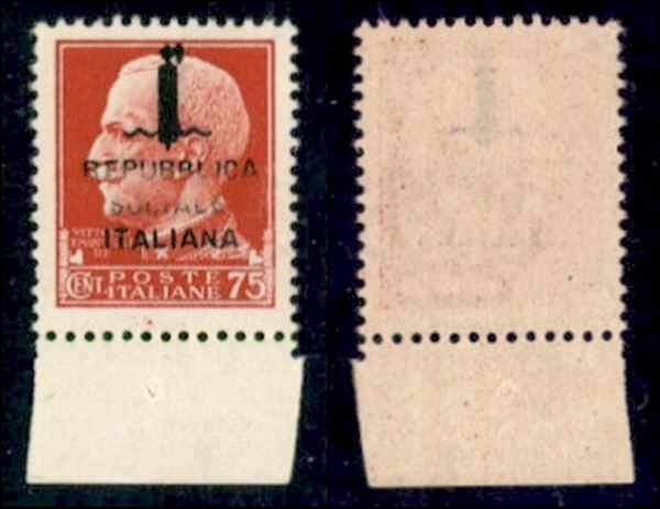 1944 - 75 cent (494ma) bordo foglio soprastampa evanescente - gomma integra