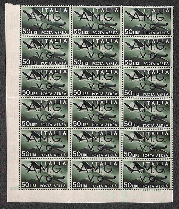1946 - 50 lire Posta Aerea (8) - blocco di 18 angolo di foglio - gomma integra