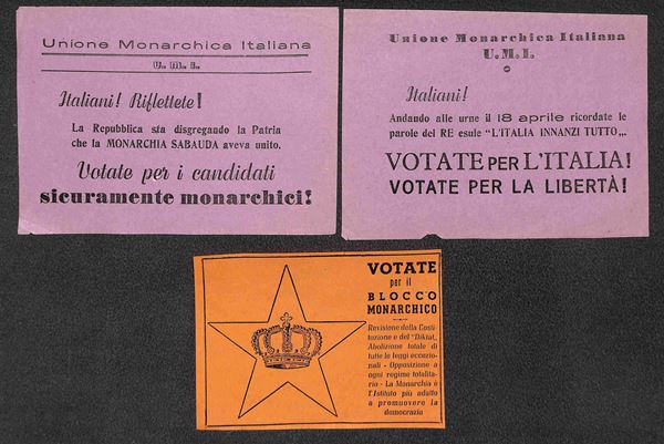 1948 - Unione Monarchica Italiana - tre volantini elettorali diversi