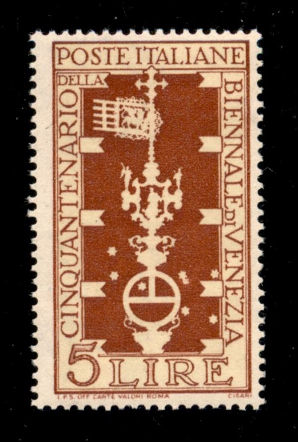 1949 - 5 lire Biennale (594a) - otto stelle anzichè sette - gomma integra
