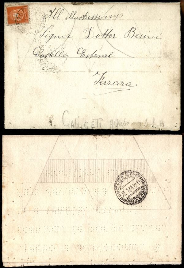 2 cent (242A) isolato su piego Braille per Ferrara del 20.1.34