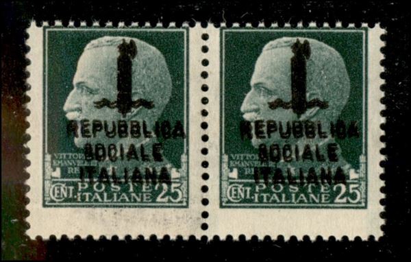 25 cent (491b) - coppia con doppia soprastampa - filigrana lettere 15/10 a sinistra - gomma integra