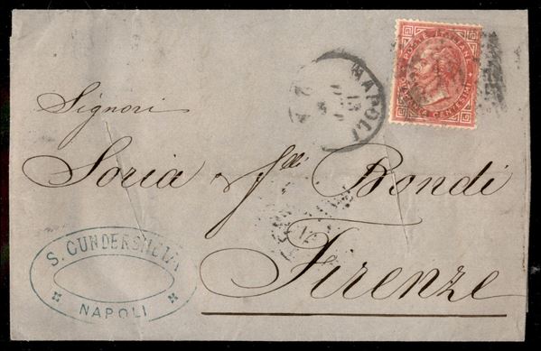 40 cent De La Rue (L20) isolato su lettera da Napoli a Firenze del 13.10.66 - disinfettata con tagli