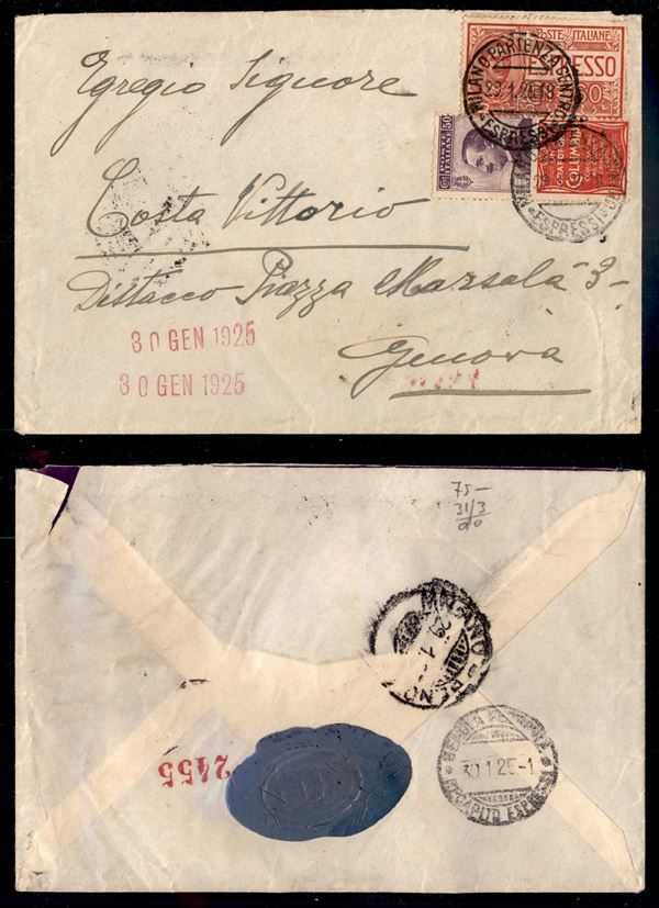 50 cent Columbia (11) + complementare (7 - Espressi) - busta da Milano a Genova del 29.1.25