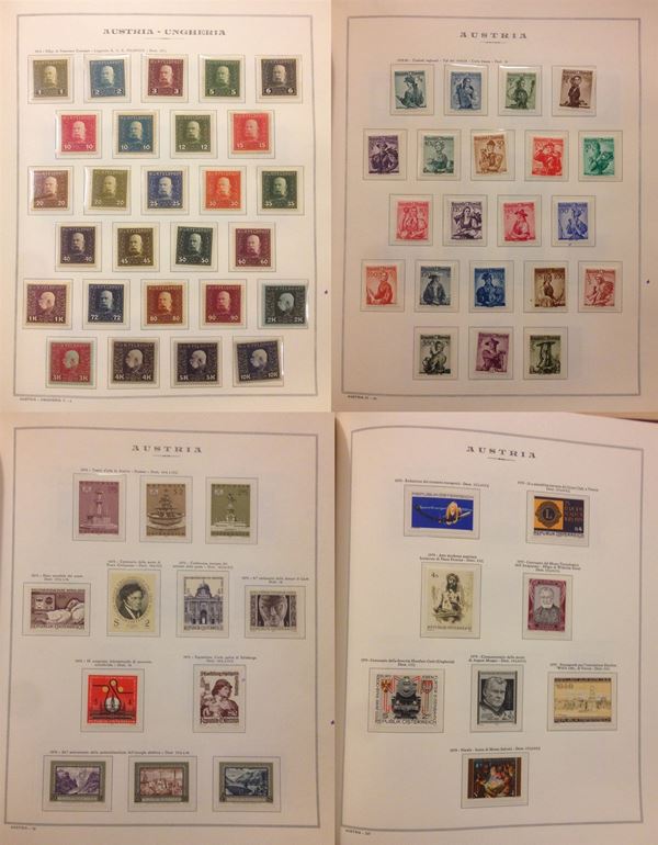 AUSTRIA - 1915/1980 - Collezione del periodo con prima parte dell’occupazione dell’Ungheria (1915/1918) montata in album su fogli Marini - molto bella