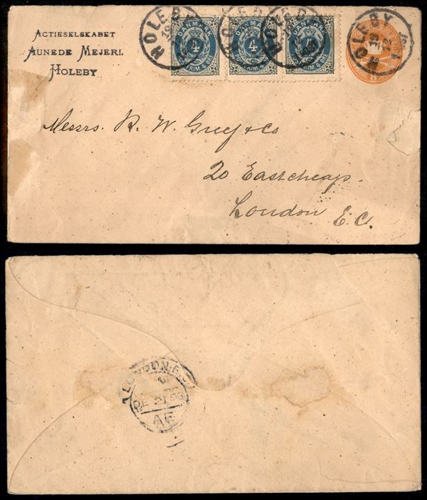 Busta postale da 8 ore con complementari (23 - coppia + singolo) da Holeby a Londra del 19.12.93