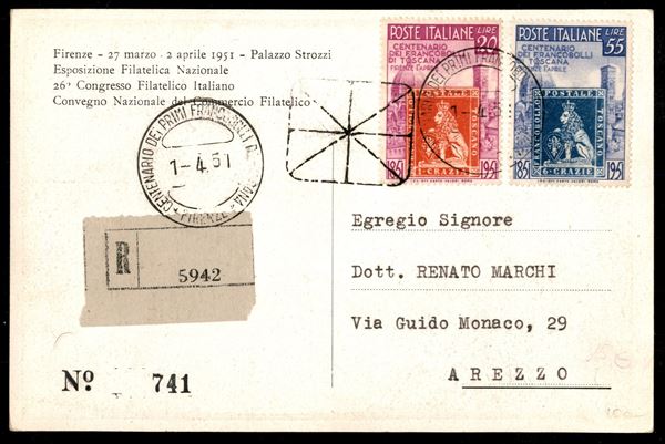Centenario di Toscana (653/654) - serie completa su cartolina raccomandata del 1.4.51