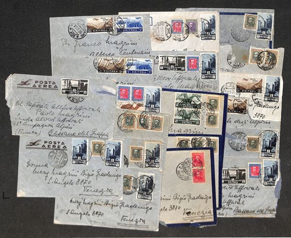 COLONIE - Guerra d'Etiopia - 1936 - 19 aerogrammi per l'Italia con affrancature di Eritrea e annulli di posta militare del periodo - qualità mista - da esaminare