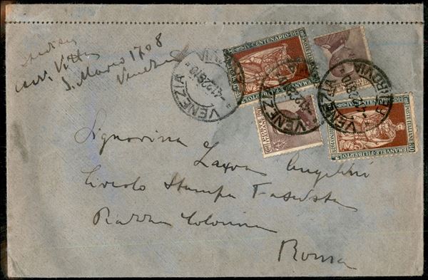 Due 30 cent dent. 11 + due 20 cent (204 + 228) su lettera due porti da Venezia per Roma del 4.12.28