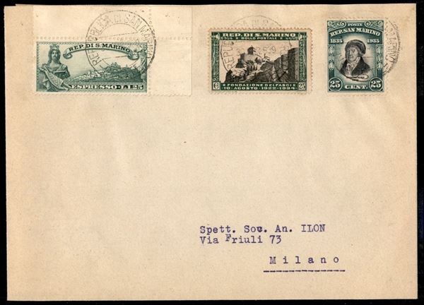 Espresso del 1939 per Milano affrancato con 25 cent Fondazione dei Fasci (189) + 25 cent Delfico (198) + 25 cent Espressi (7)