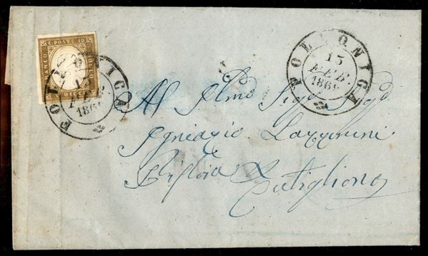 Follonica (P.ti 3) - 10 cent (14D - Sardegna) su lettera per Cutiglione del 13.2.62