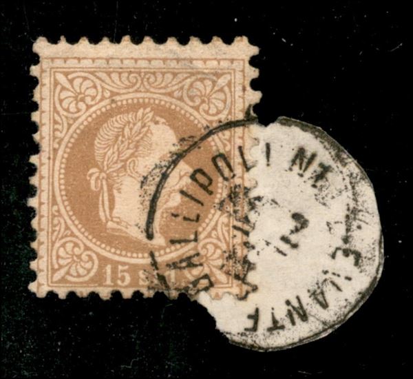 Levante Austriaco - Gallipoli nel Levante (P.ti 8) - 15 soldi (5) su frammento