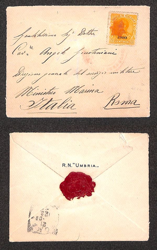 Navigazione - R.N.Umbria - 1° Viaggio di Circumnavigazione 1901/1903 - busta della nave dal Venezuela a Roma